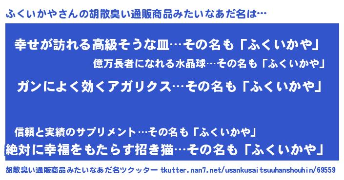 | ヘコむあだ名 | 『つくし』『ふくいかや(苦笑)』 |