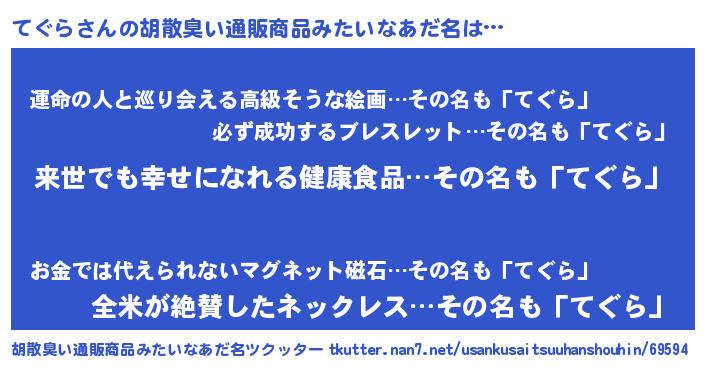| 意味不明あだ名 | 『永久保存てぐら』『てぐらフォーエバー』 |