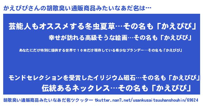 | 意味不明あだ名 | 『住所不定無職かえぴぴ(95歳)』 |