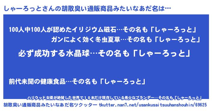 | 男性向けラノベタイトル風あだ名 | 『しゃーろっとの憂鬱』 |