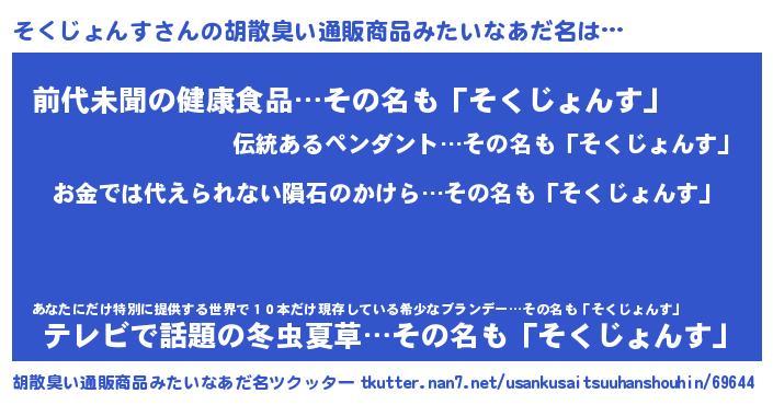 | ヘコむあだ名 | 『そくじょんす(苦笑)』『そくっ子』 |
