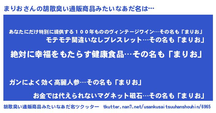 | 意味不明あだ名 | 『永久保存まりお』『ペロリンまりお』 |