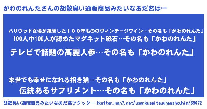 | 意味不明あだ名 | 『自称かわのれんた』 |