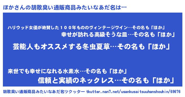 | ヘコむあだ名 | 『ほかぷりん』『牛乳』『ほか(笑)』 |