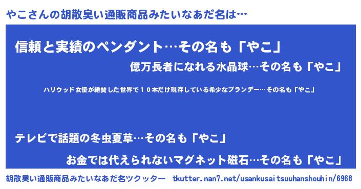 | ピコ太郎風あだ名 | 『ヤコ六郎』『ヤヤ太郎』『ヤコ三郎』 |