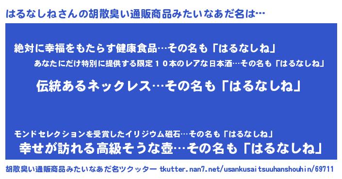 | ヘコむあだ名 | 『はる太郎』『はるなしね(笑)』 |