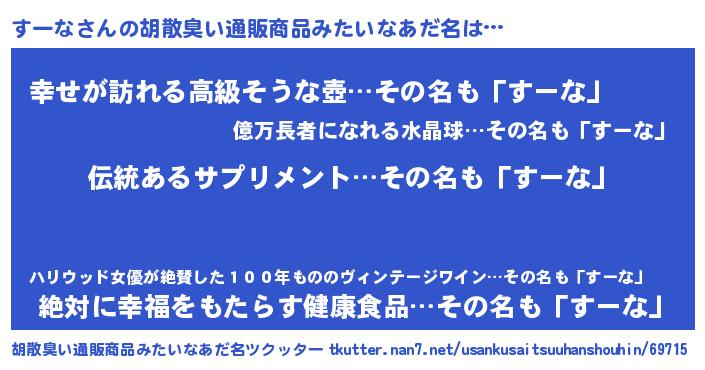 | ヒーロー風カッコイイあだ名 | 『魔戒騎士スー』『ウルトラすーなマン』 |