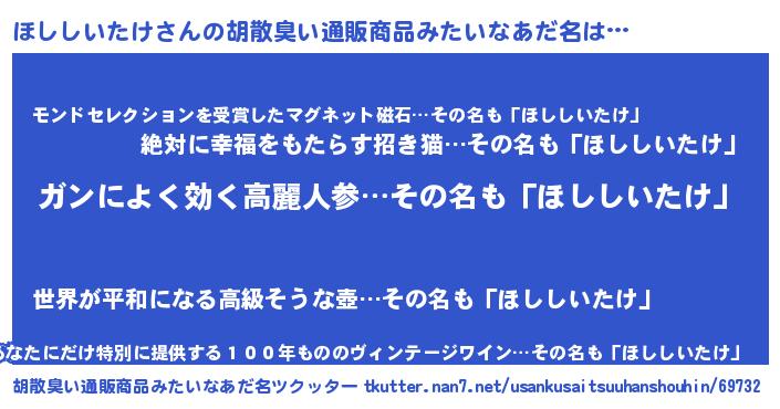 | 意味不明あだ名 | 『自称ほししいたけ』 |