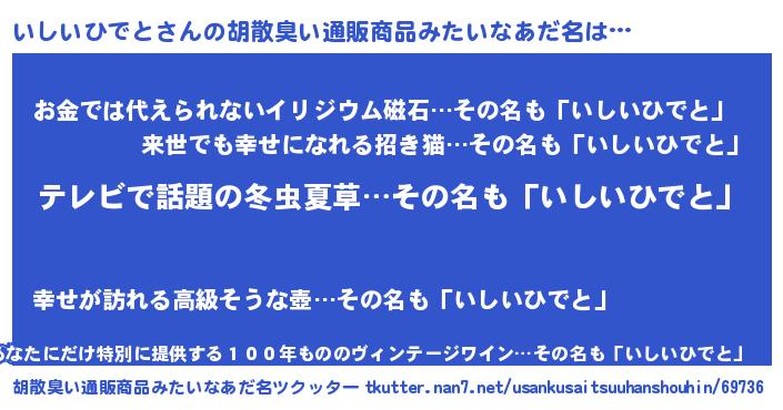 | ヘコむあだ名 | 『いしいひでと(苦笑)』『豆乳』 |