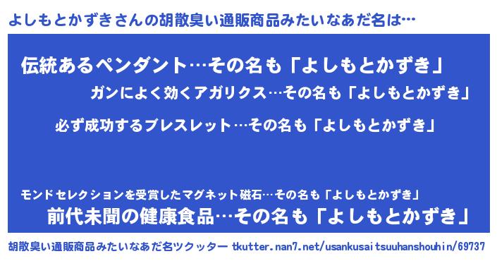 | 男性向けラノベタイトル風あだ名 | 『よしもとかずきの憂鬱』 |