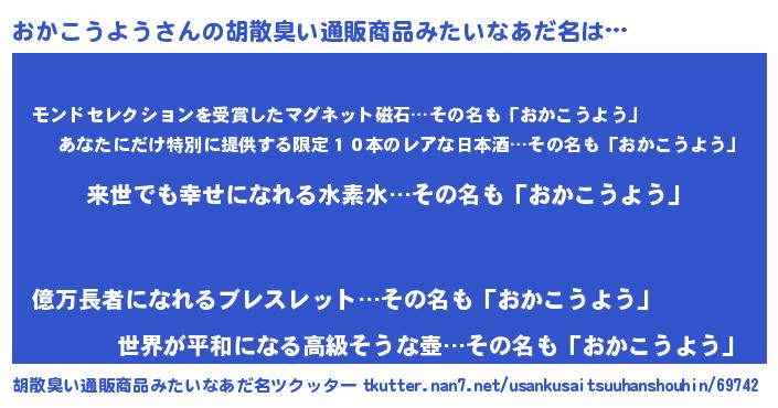 | 意味不明あだ名 | 『永久保存おかこうよう』 |