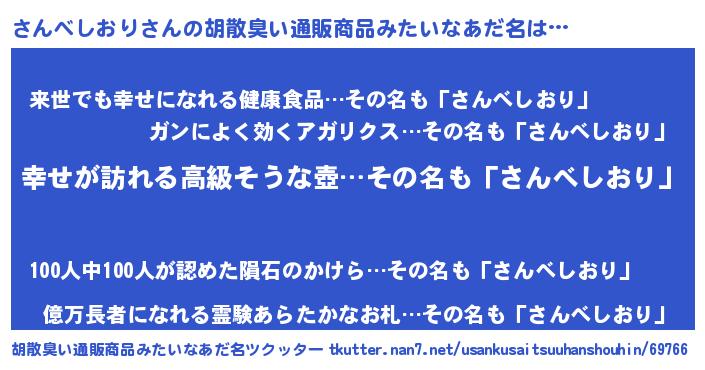 | 女子向けラノベタイトル風あだ名 | 『さんべしおりの雑貨屋さん』 |
