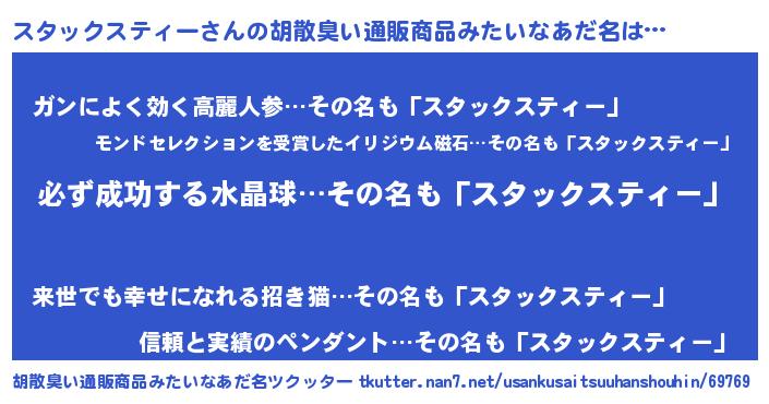 | 男性向けラノベタイトル風あだ名 | 『はたらくスタックスティーさま!』 |