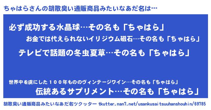 | 意味不明あだ名 | 『自称ちゃはら』『ペロリンちゃはら』 |