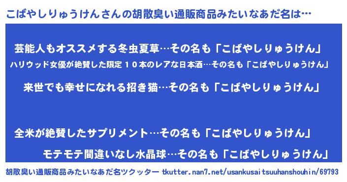 | 意味不明あだ名 | 『永久保存こばやしりゅうけん』 |