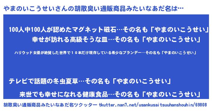 | ヘコむあだ名 | 『やまのいこうせい(遠い目)』『牛乳』 |