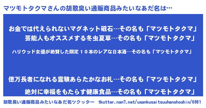 | ヘコむあだ名 | 『マツモトタクマ(苦笑)』『マツにー』 |