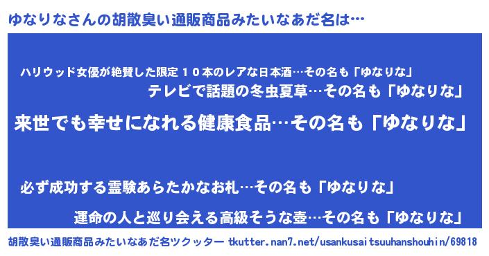 | ヘコむあだ名 | 『ゆなりな(爆)』『牛乳』 |