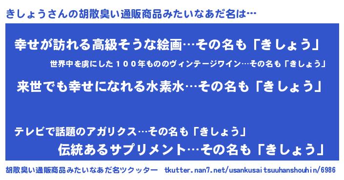 | 意味不明あだ名 | 『永久保存きしょう』 |