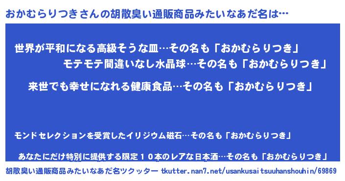 | 意味不明あだ名 | 『永久保存おかむらりつき』 |