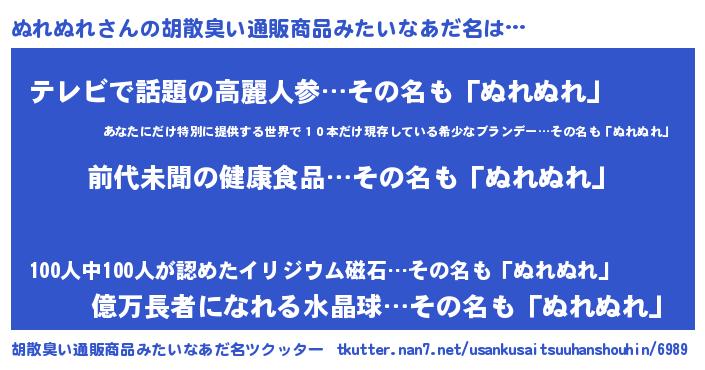 | 意味不明あだ名 | 『永久保存ぬれぬれ』『自称ぬれぬれ』 |
