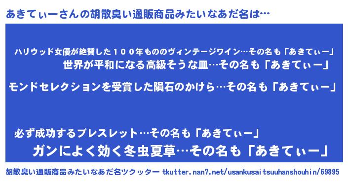 | ヘコむあだ名 | 『レバニラ』『あきっふぃ~』 |