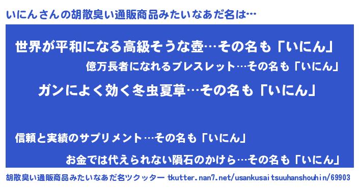 | 男性向けラノベタイトル風あだ名 | 『イニンスレイヤー』 |
