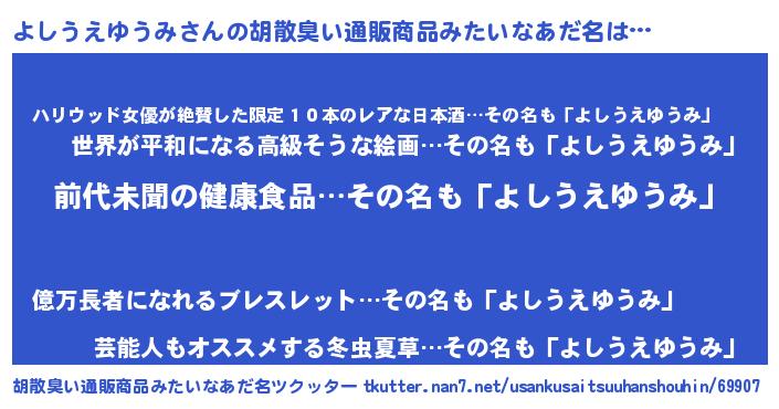 | 意味不明あだ名 | 『永久保存よしうえゆうみ』 |
