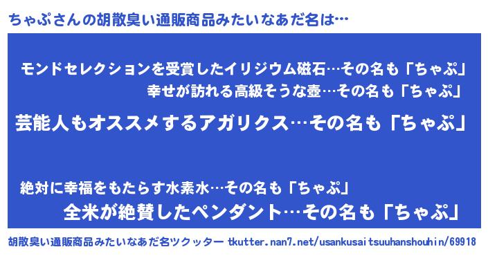 | 意味不明あだ名 | 『自称ちゃぷ』『眠気覚ましガムちゃぷ味』 |
