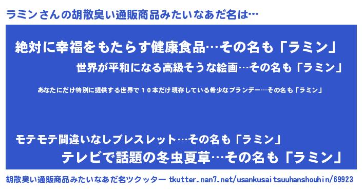 | ヘコむあだ名 | 『ラミン(遠い目)』『豆乳』 |