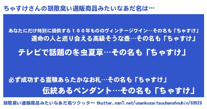 | 意味不明あだ名 | 『自称ちゃすけ』『ちゃすけフォーエバー』 |
