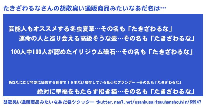 | ヒーロー風カッコイイあだ名 | 『正義の使者たきざわるな』 |