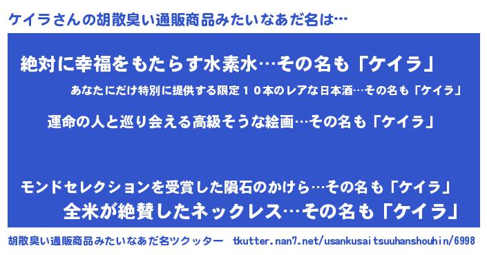 | 欧米人風あだ名 | 『ケイラクリステル』『トリンドルケイラ』 |