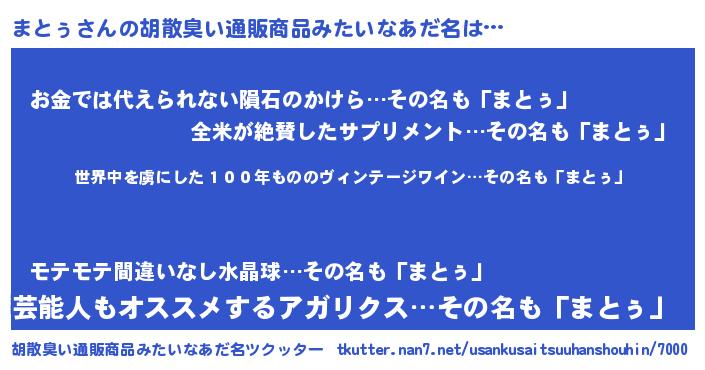 | 意味不明あだ名 | 『住所不定無職まとぅ(1歳)』『自称まとぅ』 |