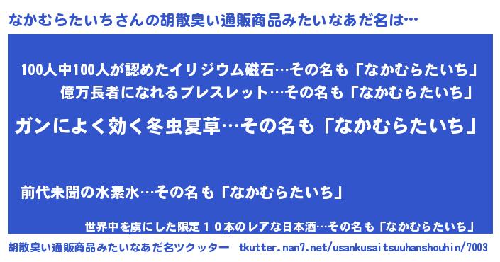 | 意味不明あだ名 | 『自称なかむらたいち』 |