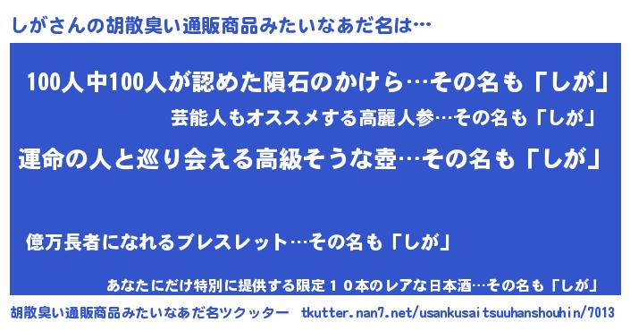 | 意味不明あだ名 | 『しがフォーエバー』『自称しが』 |