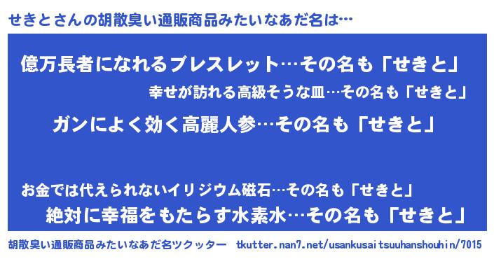 | 意味不明あだ名 | 『自称せきと』『ペロリンせきと』 |