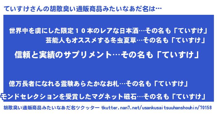 | 意味不明あだ名 | 『とにかく怪しいていすけ』 |