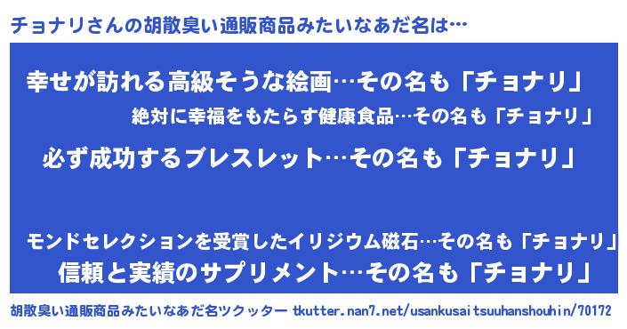 | 意味不明あだ名 | 『ペロリンチョナリ』『永久保存チョナリ』 |