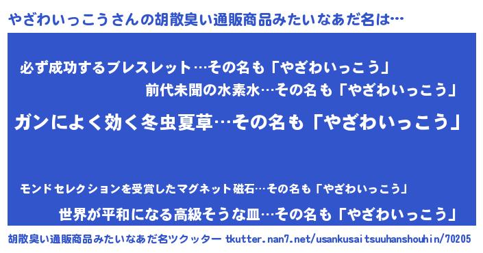 | 意味不明あだ名 | 『自称やざわいっこう』 |