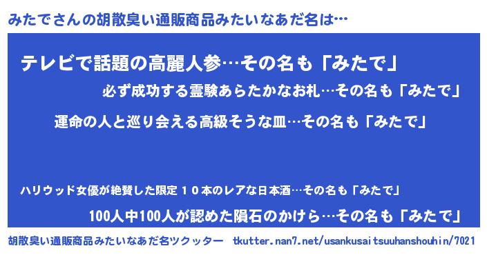 | ヘコむあだ名 | 『酢こんぶ』『みたっふぃ~』 |