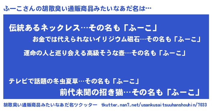 | 意味不明あだ名 | 『ふーこフォーエバー』『永久保存ふーこ』 |
