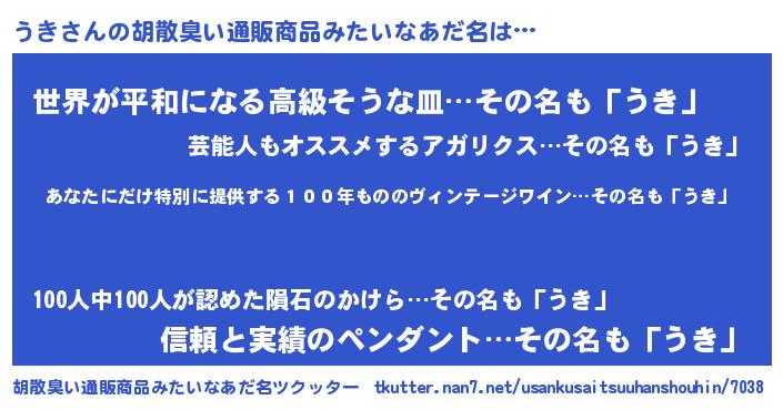 | 欧米人風あだ名 | 『ダレノガレうき』『うきクリステル』 |