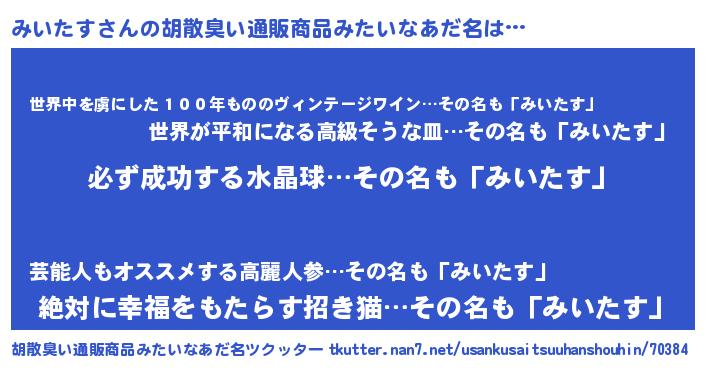 | 欧米人風あだ名 | 『マイケルみいたす』 |