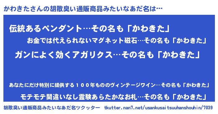 | 意味不明あだ名 | 『自称かわきた』『ペロリンかわきた』 |
