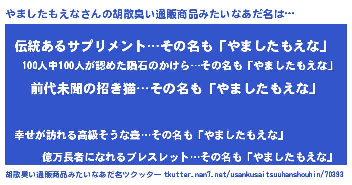 | ヘコむあだ名 | 『やましたもえな(小並感)』『やまを』 |