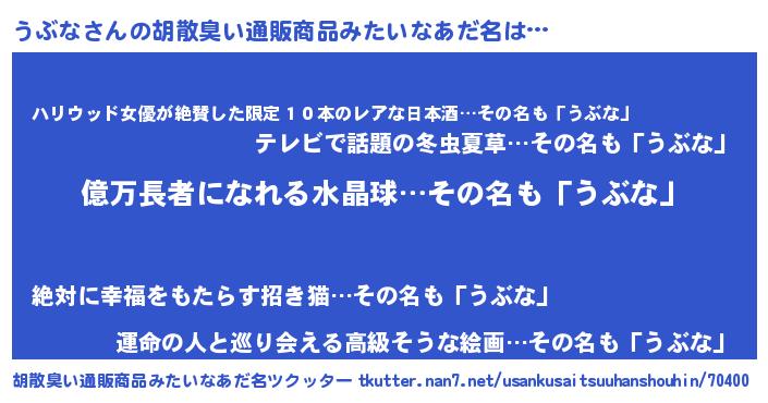 | 意味不明あだ名 | 『ペロリンうぶな』『うぶなフォーエバー』 |