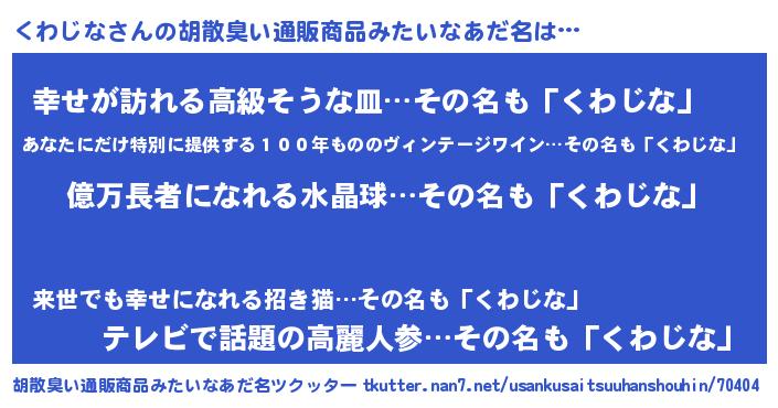 | 意味不明あだ名 | 『ペロリンくわじな』『自称くわじな』 |