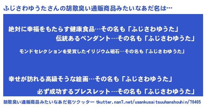 | ヘコむあだ名 | 『ふじさわゆうた(爆)』『ふじにー』 |