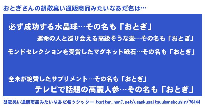 | 欧米人風あだ名 | 『ダニエルおとぎ』『マイケルおとぎ』 |